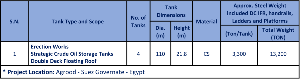 - Agrood Strategic Crude Oil Storage Tanks in Suez (EGPC Project), Egypt